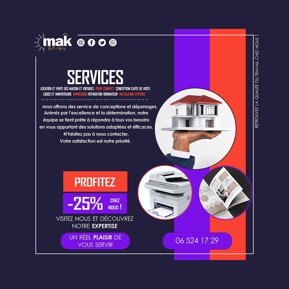 Besoin d’un design qui marque les esprits et fait la différence ? Nous transformons vos idées en créations uniques pour vos marques et événements ! ✅ Flyers captivants qui attirent tous les regards. ✅ Logos personnalisés qui reflètent votre identité. ✅ Certificats élégants pour récompenser avec style.